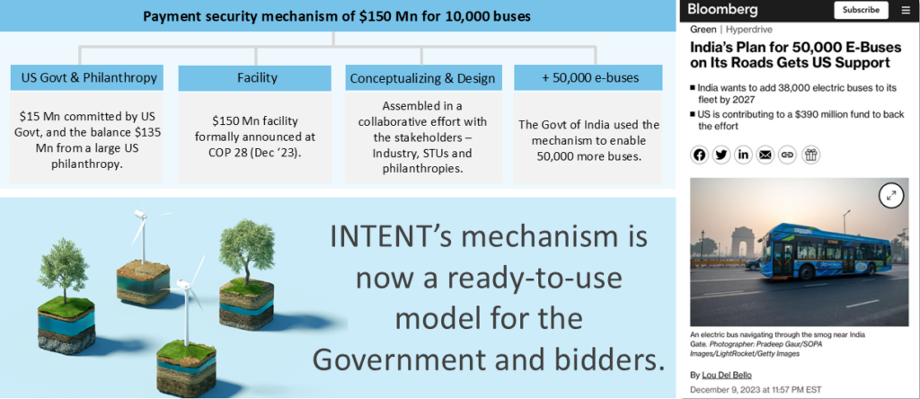 Team behind INTENT designed innovative payment security mechanism to enable 50k e-Buses drawing commitment from US Govt and large philanthropy